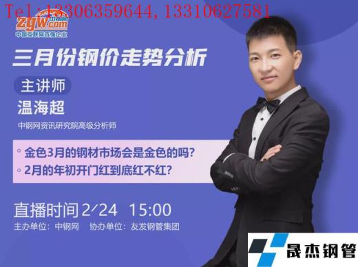3月旺季臨近,精密鋼管市場會是金色的嗎?在庫存大幅走高,鋼價如何演繹?伴隨著政策監(jiān)管日益趨嚴,鐵礦石價格大跌之后,一季度還存在哪些機會?更多熱點資訊,請關(guān)注2月24日下午三點,2022年三月份行情直播會,河南銀商通實業(yè)有限公司總經(jīng)理孫建、資訊研究院高級分析師溫海超等,圍繞著“市場精密鋼管需求方向解析”、“當下政策的影響”、“影響鋼價熱點話題”、“3月份鋼價走勢預(yù)測”等熱點話題鞭辟入里、層層分析。