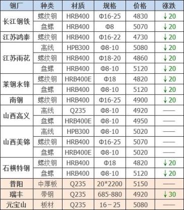 下調(diào)10家,占比55.6%,調(diào)價幅度20-40元/噸,