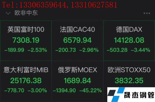 英國(guó)富時(shí)100指數(shù)、法國(guó)CAC40指數(shù)、德國(guó)DAX指數(shù)、意大利MIB指數(shù)均已暴跌。截至目前,分別跌2.53%、2.96%、3.44%、3.00%,俄羅斯MOEX下跌45.22%。