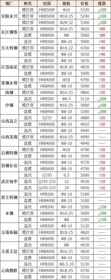 上調(diào)9家,占比52.9%,調(diào)價(jià)幅度10-80元/噸;