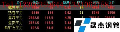 今日螺紋主力期貨漲30,收報(bào)4880,漲幅0.62%;熱卷主力漲134,收報(bào)5249,漲幅2.62%;焦煤主力漲117.5,收報(bào)2882.5,漲幅4.25%;焦炭主力漲118.5,收報(bào)3571.5,漲幅3.43%;鐵礦石主力漲51,收報(bào)797.5,漲幅6.83%。