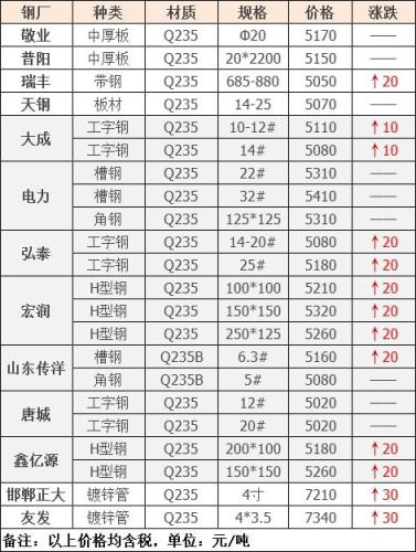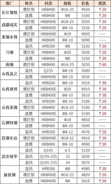 18日廣東河源德潤鋼鐵到廠漲60:鋼筋切粒3550;邊角料,新鋼板料3520;純鋼筋頭,直鋼筋3500;模具鋼、料頭圓鋼、軌道鋼、火車輪3500;硅鋼片停收;冷軋、熱軋、碎料沖子3450;優(yōu)重3500;鍛打料、馬蹄鐵3500;重廢3450;機(jī)械生鐵、高碳鋼、鑄鋼件、生熟混裝3450,厚剪3400,不含稅